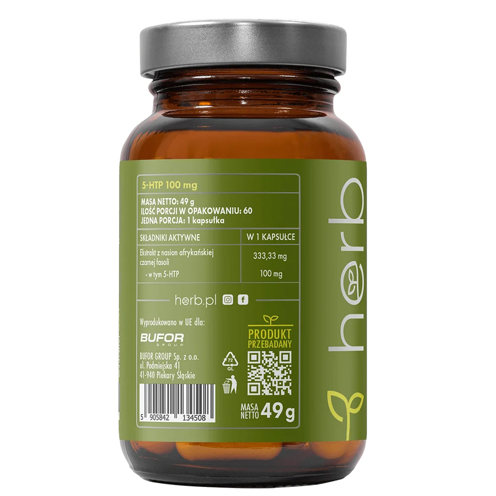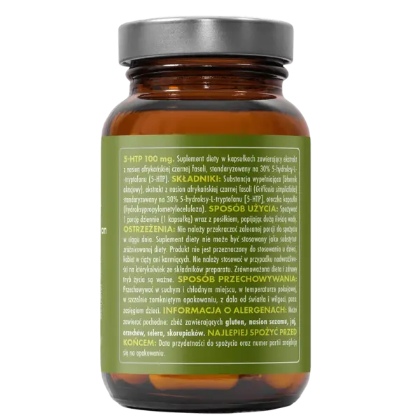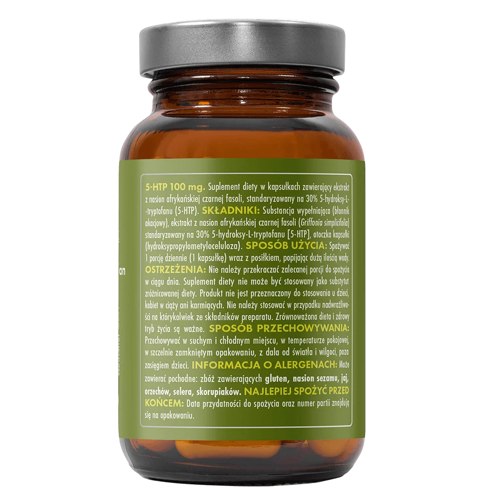 5-HTP to suplement diety zawierający naturalny ekstrakt z nasion afrykańskiej czarnej fasoli (Griffonia simplicifolia), standaryzowany na 30% 5-hydroksytryptofanu. 5-HTP to bezpośredni prekursor serotoniny – neuroprzekaźnika odpowiadającego za nastrój, spokój i dobre samopoczucie. Suplementacja może wspierać równowagę emocjonalną, szczególnie w okresach stresu, przemęczenia lub obniżonego nastroju.