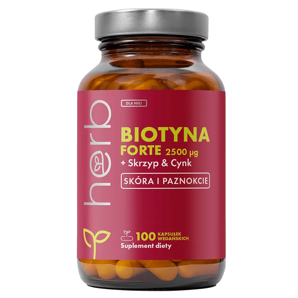 Biotyna Forte + Skrzyp & Cynk to zaawansowany suplement diety zaprojektowany z myślą o kompleksowym wsparciu urody. Wysoka dawka biotyny (2500 μg) pomaga zachować zdrowe i mocne włosy oraz promienną skórę. Standaryzowany ekstrakt ziela skrzypu polnego, bogaty w naturalną krzemionkę, dodatkowo wspomaga strukturę włosów i skóry od środka. Cynk pomaga zachować zdrowe paznokcie i chroni komórki przed stresem oksydacyjnym, a witamina C wspiera produkcję kolagenu.