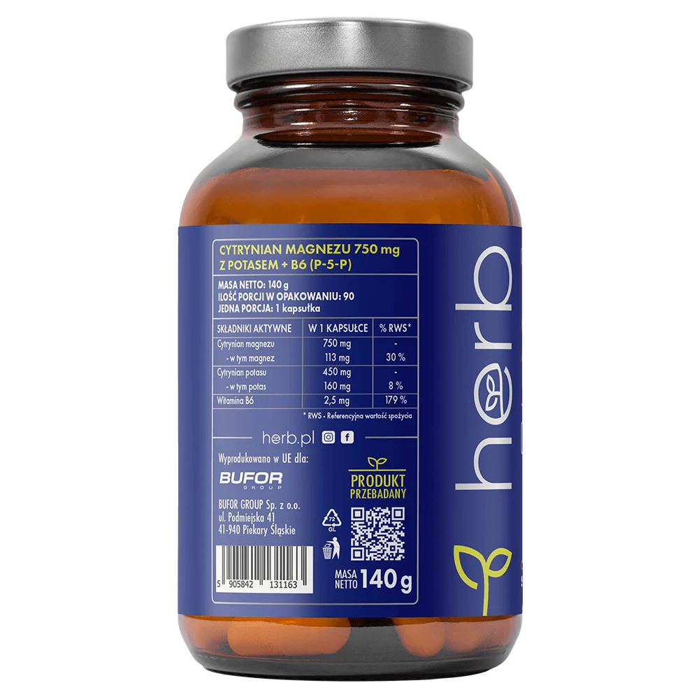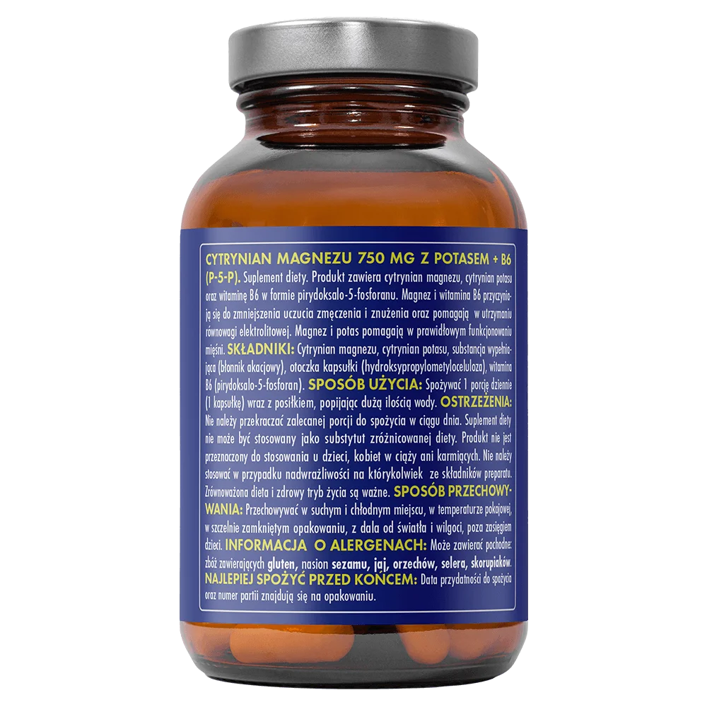 Cytrynian magnezu 750 mg z Potasem + B6 (P-5-P) – 90 vege kaps.