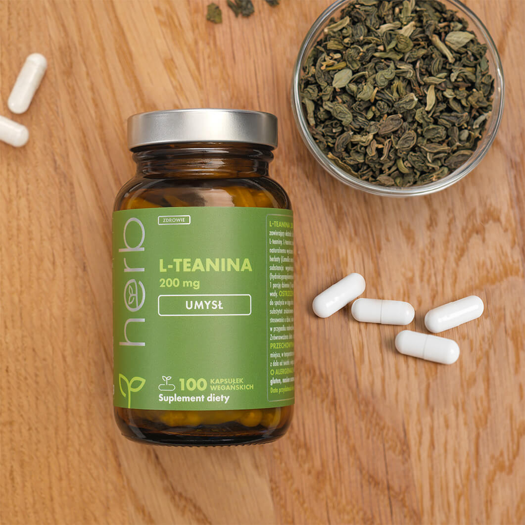 L-Teanina 200 mg to suplement diety zawierający ekstrakt z liści zielonej herbaty (Camellia sinensis), standaryzowany aż na 99% L-teaniny – aminokwasu znanego ze swoich łagodnych, ale skutecznych właściwości wspierających relaks, koncentrację i równowagę psychiczną. L-teanina nie działa uspokajająco w sposób otępiający – wspomaga jasność umysłu i skupienie, jednocześnie redukując napięcie i stres.