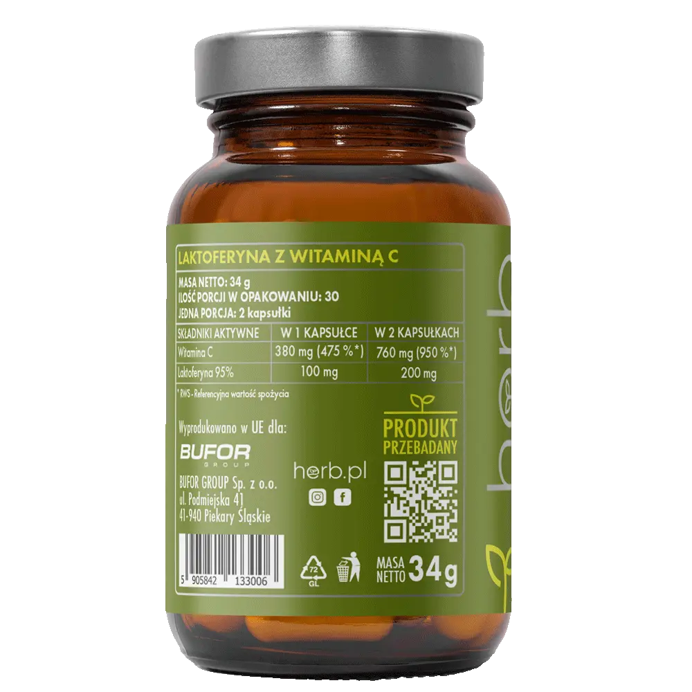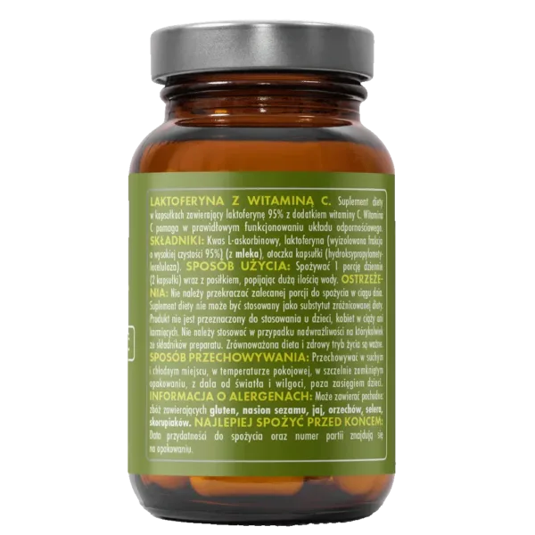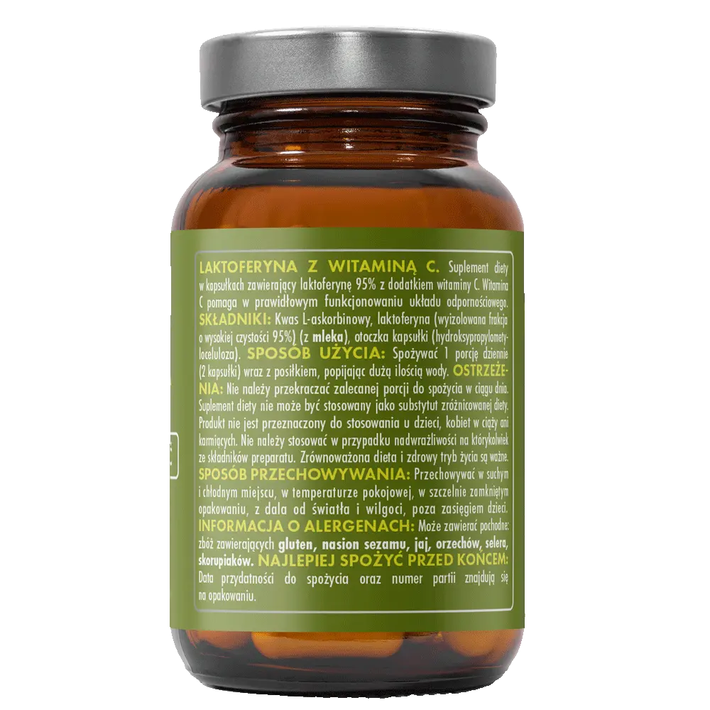 Produkt polecany osobom z obniżoną odpornością, w trakcie rekonwalescencji, przy nawracających infekcjach oraz w okresach wzmożonego stresu i zmęczenia. Dzięki synergii działania laktoferyny i witaminy C, preparat pomaga chronić organizm od wewnątrz. Wygodna kapsułka, odpowiednia do codziennego stosowania – bez zbędnych dodatków i wypełniaczy.