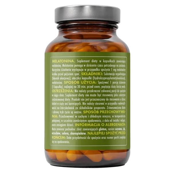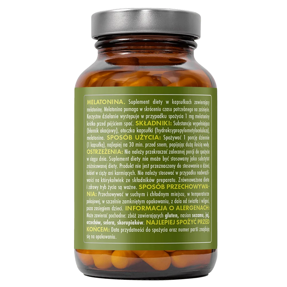 Melatonina to suplement diety zawierający syntetyczny odpowiednik naturalnego hormonu snu – melatoniny. Organizm produkuje ją wieczorem, sygnalizując potrzebę odpoczynku. Suplementacja melatoniną pomaga skrócić czas zasypiania i ułatwia zasypianie osobom z zaburzeniami rytmu dobowego, takimi jak jet lag, praca zmianowa czy przewlekły stres.