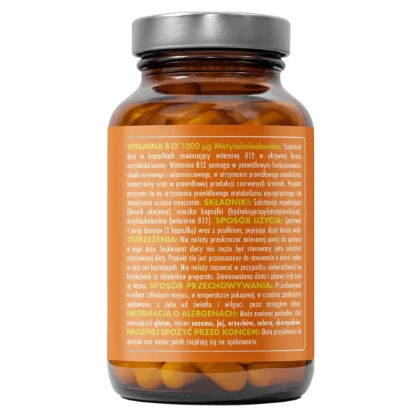 Witamina B12 1000 µg (Metylokobalamina) to suplement diety zawierający wysoko przyswajalną, aktywną formę witaminy B12 – metylokobalaminę. Witamina ta odgrywa kluczową rolę w funkcjonowaniu układu nerwowego, odpornościowego oraz w produkcji czerwonych krwinek. Jest niezbędna dla metabolizmu homocysteiny i prawidłowej pracy mózgu.
